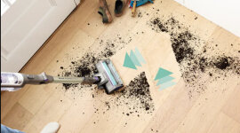 The DuoClean Detect nozzle uses dual brushrolls to deep-clean all floor types, capturing more dirt, dust, and debris with every pass. Designed for powerful hair pickup, it ensures a thorough clean, making it ideal for homes with pets.