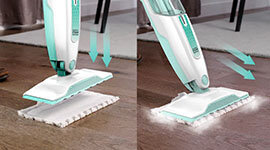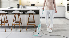 At only 1.8kg, this steam mop is lightweight and easy to move around the house, with a 5.5-meter cord for extended reach.