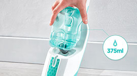 The 375ml removable water tank allows you to clean more before needing a refill, making it perfect for large floor areas.