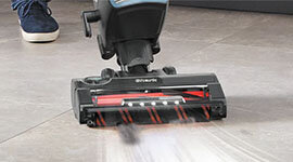 Dual motorised brush rolls handle both carpets and hard floors, easily removing large debris and fine dust.
