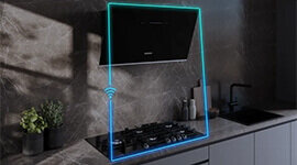The cookConnect system links your hob and rangehood so the hood automatically switches on when cooking begins. Adjust fan speed or lighting directly from the hob or via the Home Connect app for effortless control.