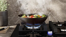 From fiery stir-fries to perfectly seared steaks, the dual wok burner delivers up to 5.0 kW of heat (depending on your fuel source). Controlled by a single knob, its twin flames let you switch seamlessly between high and low power for exceptional performance and precise results.