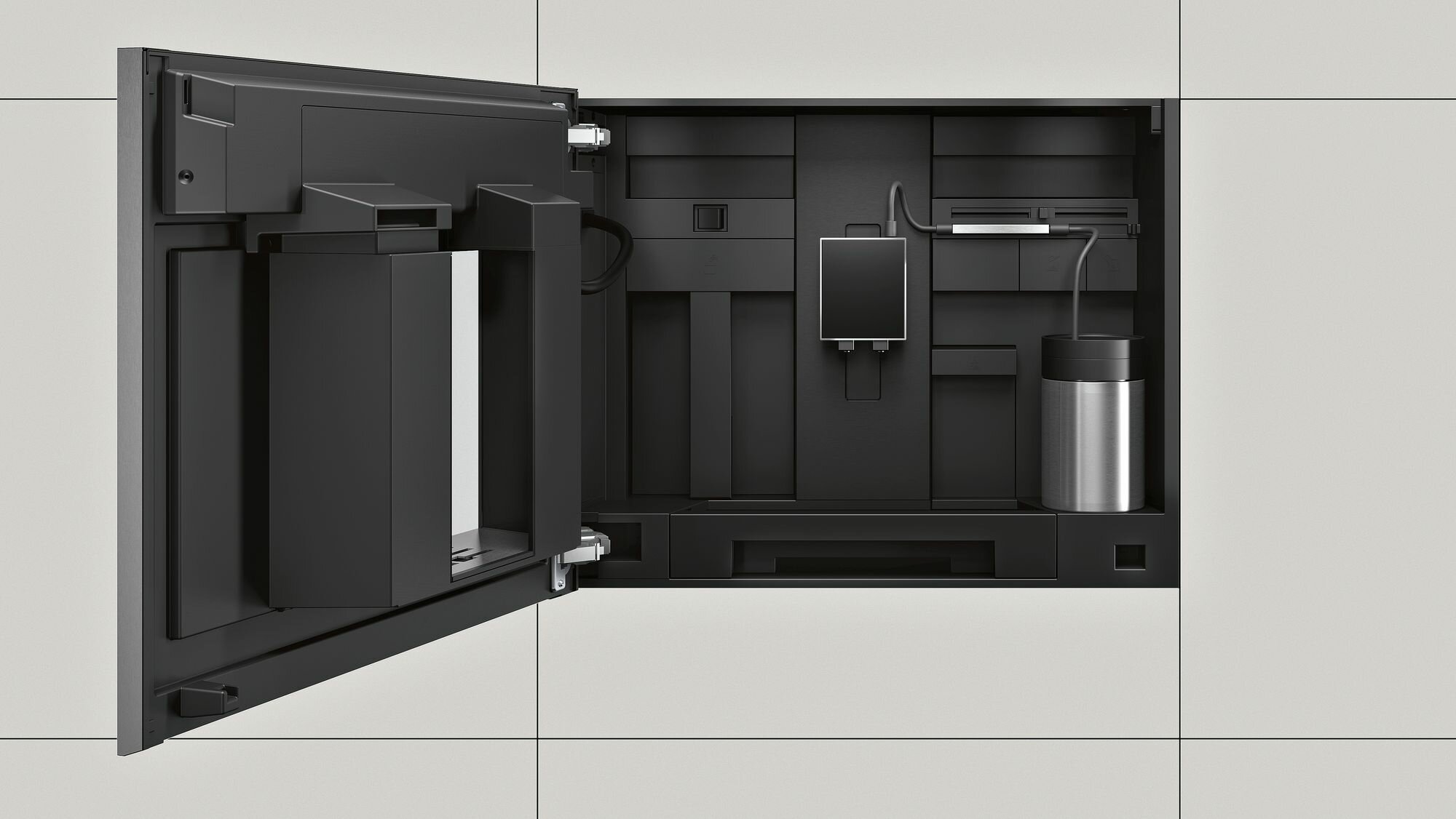 | Features | Control Display: 4.1" TFT Display with interactive Menu. Cleaning: Auto Cleaning of the entire milk system-auto milk clean. Inbuilt Grinder: high-quality ceramic grinder grinds coffee beans to a particularly even consistency. Bar Pressure: 19 Bar Pressure. Auto Rinsing: Automatic rinsing program when switched on or off. Water Tank Capacity: 2.4Ltrs, Milk Jug 500ml. Bean Capacity: 500gram capacity, Separate chute for Pre-ground Coffee. Cup capacity: from 20ml to 250mls Wi-Fi Via Home Connection: Yes Download the Siemens Home Connect App or Coffeeworld offer 17 additional International Coffee recipes. Coffee Strength: 8 possible Coffee Strengths are available. |