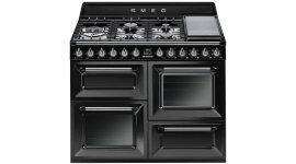 Finished in glossy black enamel with retro-inspired stainless steel accents, this cooker adds a touch of heritage elegance to modern kitchens. Classic and striking, it seamlessly blends old-world charm with contemporary function.