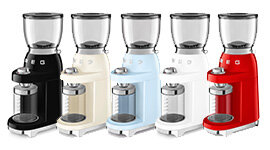 Available in multiple retro finishes, these grinders are a welcome addition to Smeg’s gorgeous range of small appliances. From bold black to creamy pastels, there’s a grinder to suit your space as well as your personality.