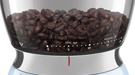 All that whirring and obliterating can take its toll on a coffee grinder. Thanks to an antistatic system and a twist-and-lock mechanism on the beans container, you won’t have to worry about any instability.