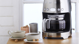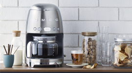 Smeg are as attentive to form as they are to functionality, presenting an aesthetic inspired by the pop art movement and iconic Italian design. When these drip machines aren’t busy brewing, they can be shown off and coordinated with the other small appliances in their family. From subdued pastels to more intense, popping tones, there’s a finish to suit every personality.