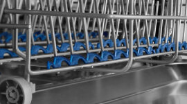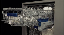 Blue anti-drip inserts are installed in the lower basket of Smeg's new generation dishwashers. This addition improves drying results and cuts down drips between dish and basket.