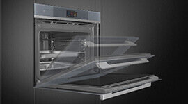 The new soft-close mechanism on Smeg’s oven doors ensures a two stage soft and quiet close. Smeg’s quality hinges also ensure the door will not drop on opening, an intrinsic safety feature.