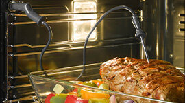 The probe is ergonomic and simple to use. As soon as the food has reached the desired core temperature, the oven will automatically switch off.