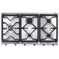 | Features | ● Spacious Design - When space is not restrictive, this wide 90cm hob offers five burners ergonomically positioned for maximum benefit, with the possibility of several styles of cooking at the one time. Also, cooked or yet to be cooked foods in their utensils are neatly contained within one safe area instead of occupying otherwise precious bench preparation or serving areas. ● Ultra-Rapid Dual Burner - Conveniently and ergonomically positioned on the left, this versatile burner, while being designed for perfect wok cooking, also suits the larger stock pots, saucepans and griddles. ● Auxiliary Burner - Perfectly situated, centre forward, this small burner enables a very low flame for the gentle simmer required for sauce reductions and low heat cooking and warming. A second auxiliary burner, capable of even lower heat simmering, is the separately controlled burner within the ultra-rapid dual control burner (wok). ● Low Maintenance - The seamless hob design allows for easy wipe-over cleaning and generous catchment of spills and accidental boilovers. The control knobs, also, are removable for cleaning access. Trivets, burner assemblies and wok stand can be washed in warm soapy water. ● Canali Design - The CIR597XS cooktop fits within a large and comprehensive range of Smeg appliances with complementing aesthetics. The architectural detail of Guido Canali makes possible the matching appliances, including the dishwasher. ● Built-in one-piece hob ● Automatic electronic ignition Cooking Zones ● Five-six gas burners, 44.3 mj/hr max ● 1 x Ultra-rapid (wok) inner: 3.4 mj/hr max ● 1 x Ultra-rapid (wok) outer: 11.5 mj/hr max ● 1 x Rapid burner, 12.0 mj/hr max ● 2 x Semi-rapid, 6.0 mj/hr max each ● 1 x Auxiliary, 4.8 mj/hr max |