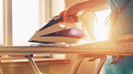 The ironing board is height adjustable between 75cm to 95cm, so you can enjoy comfortable ironing.