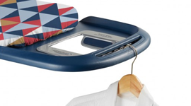 The retractable iron rest on the end of the board creates more room for speedier ironing, with a handy rail to iron and hang as you go.