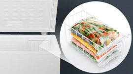 The removable sliding food storage basket provides easier access to regularly used or small items, and also slides within the freezer. The basket can be removed when needing to store larger, bulky items.