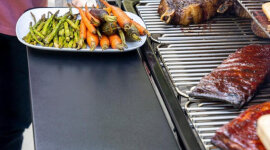 When not in use, the shelf folds flat against the grill body. This design keeps it easily accessible while preserving valuable space around your cooking area.