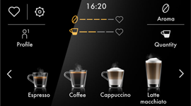 | Features | ● Controls: TouchControl ● Display: Full-colour graphic display, touchscreen ● Number of languages in display: 10 ● Lighting: LED ● Number of lights: 4 ● Energy efficiency: A ● Removable hot water steam outlet ● Milk container capacity: 0.5 l ● Waste grounds container capacity: 14.0 ● Grinder: Kegelmahlwerk ● Programmable brewing temperature ● Programmable operating time / switch-off time ● Programmable water hardness ● Plate warming shelf ● Telescopic rails soft closing/opening ● Thermal milk container (Auto cappuccino): 0,5 L mit 3 Schaumeinstellungen + Reinigung ● Drip guard ● Water tank: 2.3 l ● Adjustable grinder setting levels: 13 ● Height-adjustable dispensing head: 85-140 mm ● Integrated cleaning programme ● Programmable quantities ● Powder / beans selection button |