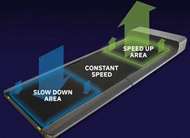 The Intelligent 3 Zone Sensor System uses induction technology and high precision pressure sensors embedded in the front acceleration, middle uniform velocity, and tail deceleration zones to control the speed automatically.
