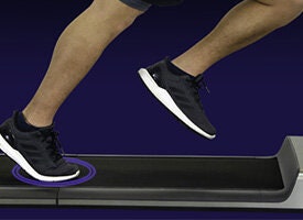 The low impact, high-density cushioning system, with an anti-slip high-density tread belt and tapered rollers, ensures excellent traction and a smoother more comfortable, and quiet walk.