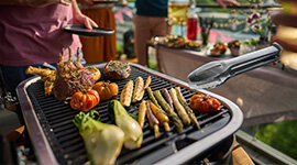 Porcelain-enamelled cast-iron cooking grills ensure even heat distribution across the entire surface, providing consistent results while retaining heat efficiently for perfectly cooked meals every time.