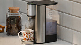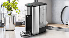 The transparent, removable tank makes it easy to monitor water levels and refill as needed—ideal for busy mornings or frequent use throughout the day.
