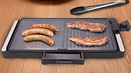 Crafted from heavy die-cast aluminium with a durable stone-finish non-stick coating, the grill ensures smooth food release and effortless cleaning after each meal.