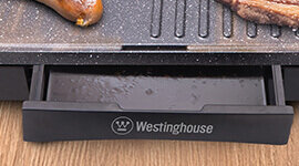 A subtle tilt channels excess oil and grease into the integrated drip tray, promoting healthier cooking while keeping the grill neat and simple to maintain.