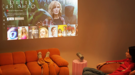 Enjoy the perfect viewing angle anywhere with a built-in 360° stand and automatic focus and keystone correction. Project effortlessly on walls, ceilings, or angled surfaces.
